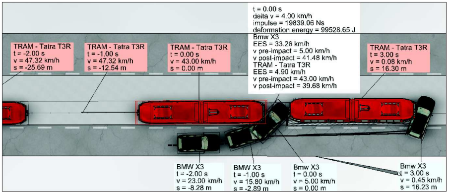 Abstract: Side impacts belong to the most dangerous types of collisions. This type of collision is typical for accidents of vehicles at crossroads (intersections). In cases where the public city transport includes tramways, there is also a risk of collision between vehicles and tramways. Considering the stiffness of construction and mass of a tramway, depending also on the number of travelling passengers, even collision at relatively low crash speeds into side part of passenger vehicle may result in severe injuries of passengers. Ten accidents of tramways with personal vehicles according to the speed of collision, damage on vehicles and the effects to injuries of the vehicle´s crew have been analysed in this paper. The crash speed is analysed according to damage on the vehicle and verified with the support of the simulation programme calculation. The cause of the accident in connection to mutual visibility aspects at the crash scene has also been analysed. All the analysed accidents occurred in city Brno, Czech Republic and were documented as part of CzIDAS project (Czech In-Depth Accident Study based on GIDAS database) by Traffic Research Centre institution. Cases have been analysed in cooperation between Brno University of Technology and Traffic Research Centre, Czech Republic.