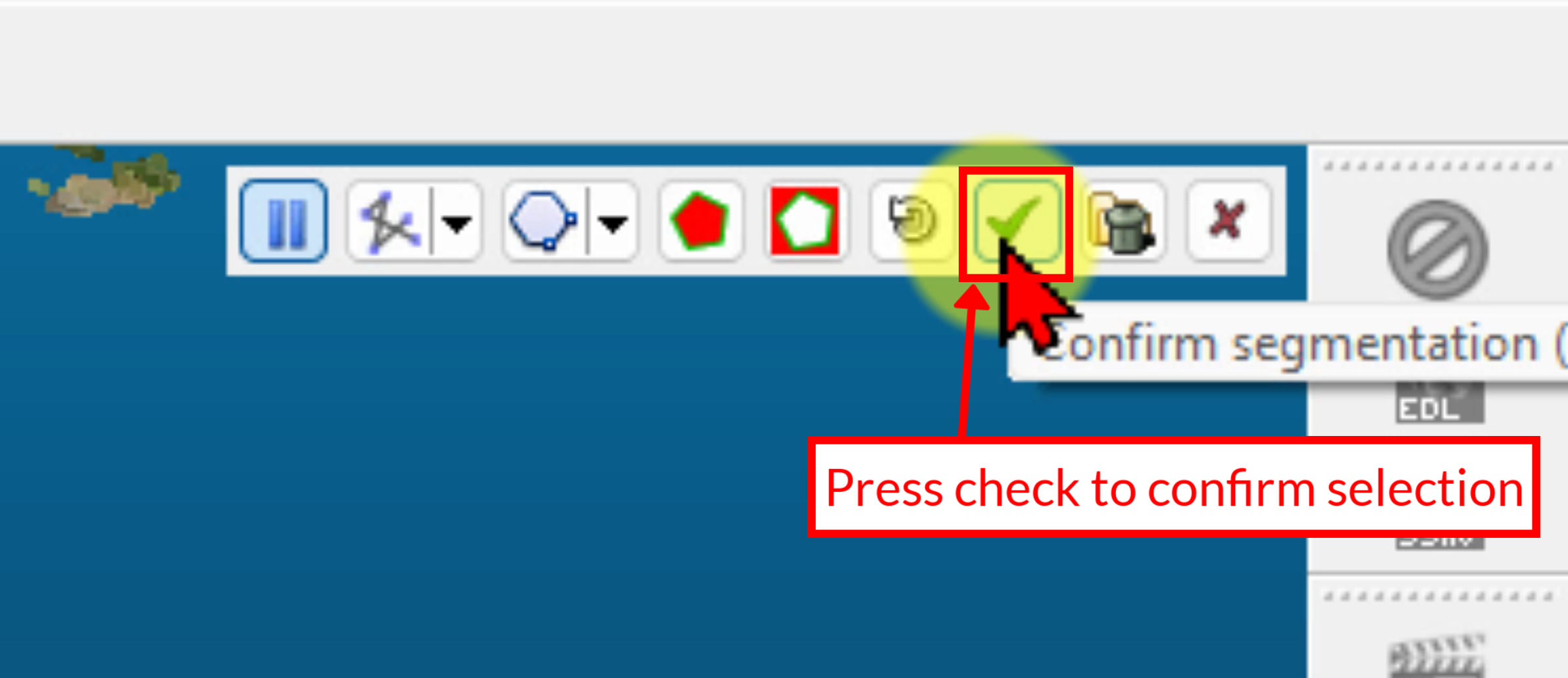 Select either “Segment In” or “Segment Out” option (it doesn’t really matter which) and left-click on the green check mark icon.