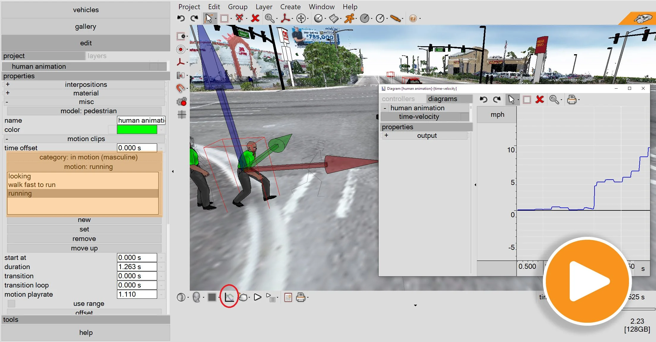 The Human Animation Tool will seamlessly integrate animated motions from the library with your simulated motion sequence.