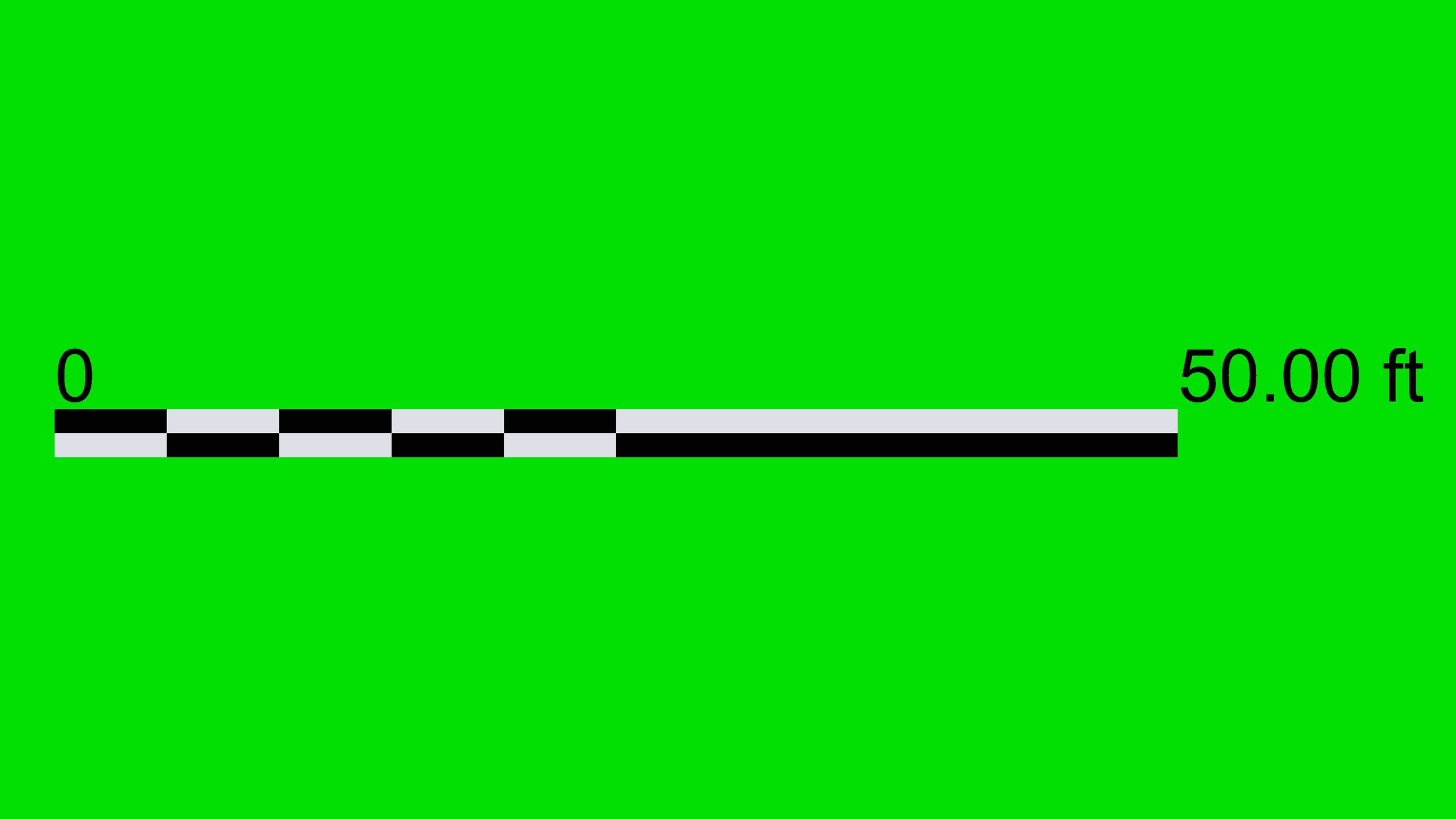 Here we see the final render. Note a green ground color is used to more easily distinguish the profile of the scale bar.