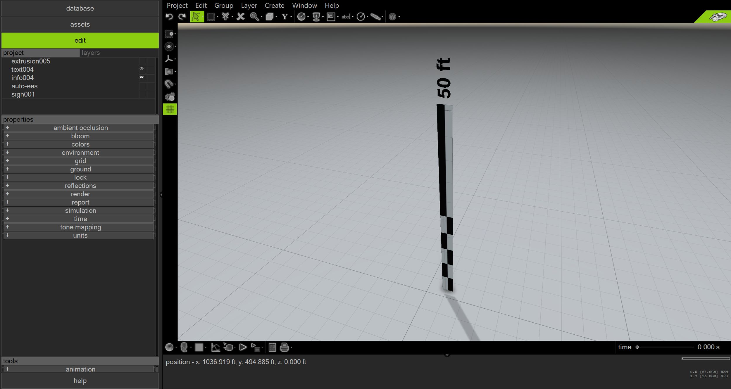 Drag and drop your scale bar image file directly onto the sign object and replace cap texture. Set “type:none” to hide sign post. Set length and width as needed.