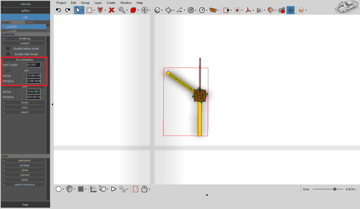 Found in the “fix orientation” menu, this is the spring constant that controls the torque response versus articulation angle beyond the initial joint articulation angle for a given joint.