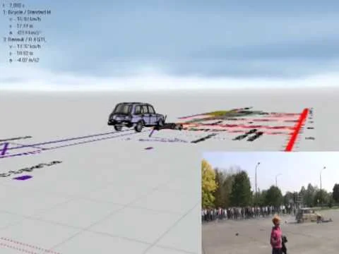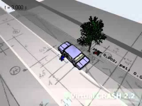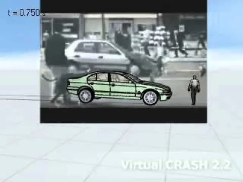 Here we see an example of Virtual CRASH 2.2 used to reconstruct real world pedestrian impact collision. The accident was captured on video. Excellent agreement is observed between the video and simulation.